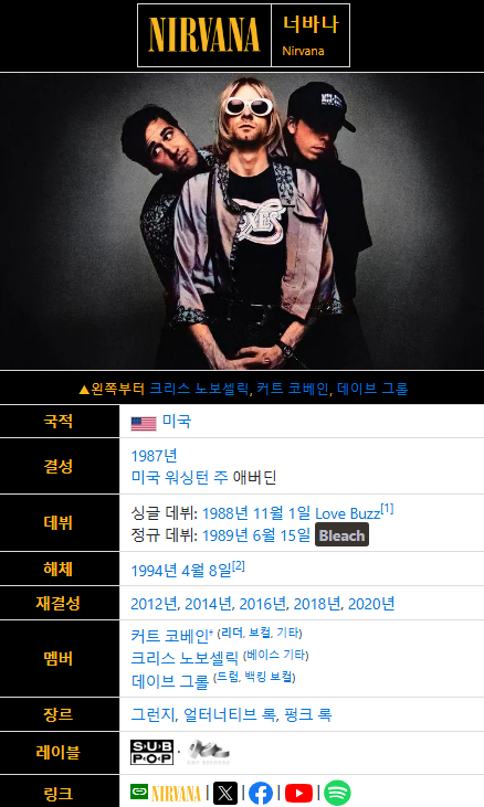 파일:너바나 스테이지.jpg 너바나 (Nirvana)는 1987년 에 결성되어 1994년 에 해체한 미국 의