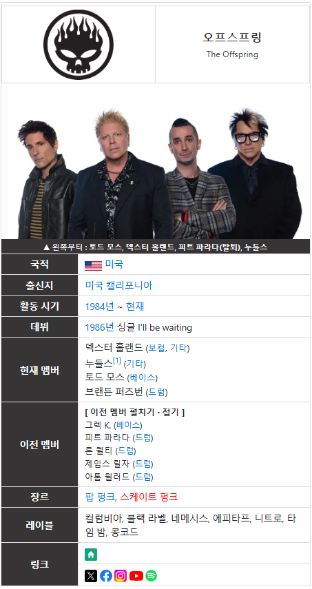 카테고리 없음 The offspring by Playlist 2025. 3. 13. 출처: 디테일이 살아있는 나무위키 https://namu.wiki/w/%EC%98%A4%ED%94%84%EC%8A%A4%ED%94%84%EB%A7%81(%EB%B0%B4%EB%93%9C) 오프스프링(밴드) 그들의 대표곡 중 하나인 The Kids aren't Alright 오프스프링을 스타덤에 올려준 Self Est namu.wiki https://youtu.be/iKKtYenGHj8?si=YQdl7B9MEOumPPCg 공유하기 게시글 관리 플레이리스트
